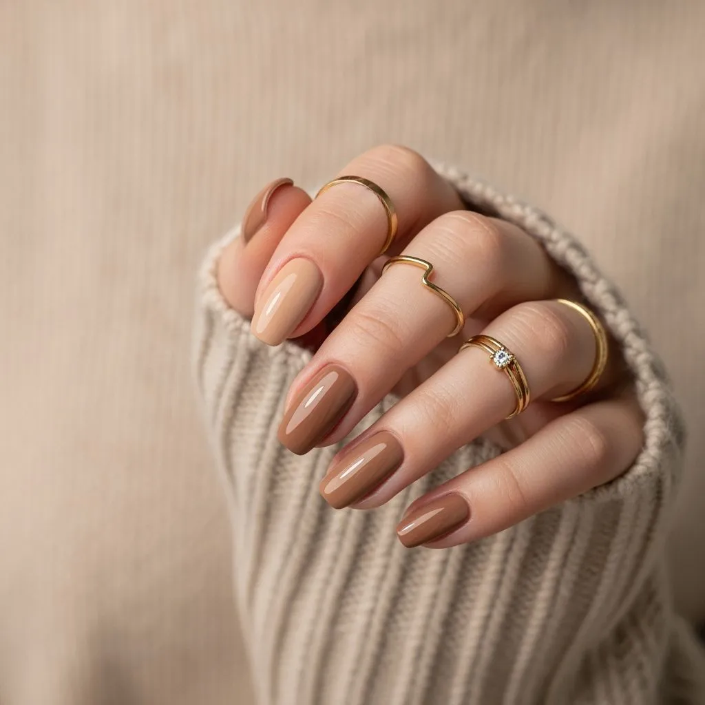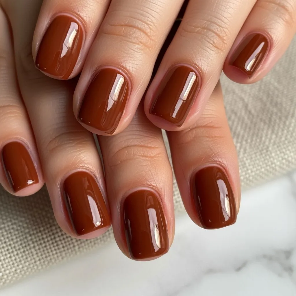 Sometimes, you don’t need all the bells and whistles. A perfect, shiny coat in a universally flattering chestnut brown is all it takes to feel polished and chic. This style is the definition of simple fall nail art; there are no decals or gradients, just rich color and a beautiful shape. It’s the perfect look when you’re seeking ideas for short nails that still feel totally up-to-date. Brown is the new black for nails this season, and this style shows exactly why.