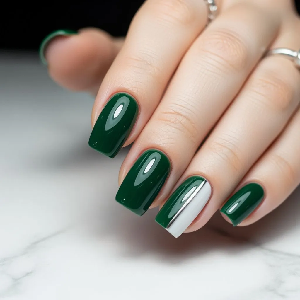 Here’s a cool-girl alternative to the usual burgundies and taupes of autumn. This look is minimalism with a twist: short, square nails painted in a saturated forest green that feels fresh, modern, and completely 2025. It’s a shade of green that is both classy and sexy. The beauty of this manicure is its low-maintenance simplicity; no tiny designs are needed, just two coats of green polish and a super glossy top coat. It’s for when you want something classic yet unpredictable.