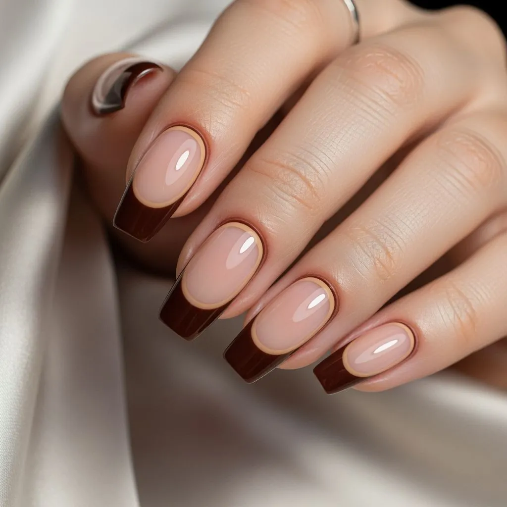 This look is where baddie meets 2025 trends sophistication. It takes the classic French tip and gives it a luxurious, sculptural twist. Imagine short almond-shaped nails with rich, espresso brown tips. What makes it so special is the fine, lighter-colored line that contours the brown, giving the tips incredible dimension. It’s a look that’s guaranteed to have people stopping you to ask about your nails—trust me, it happened to me!